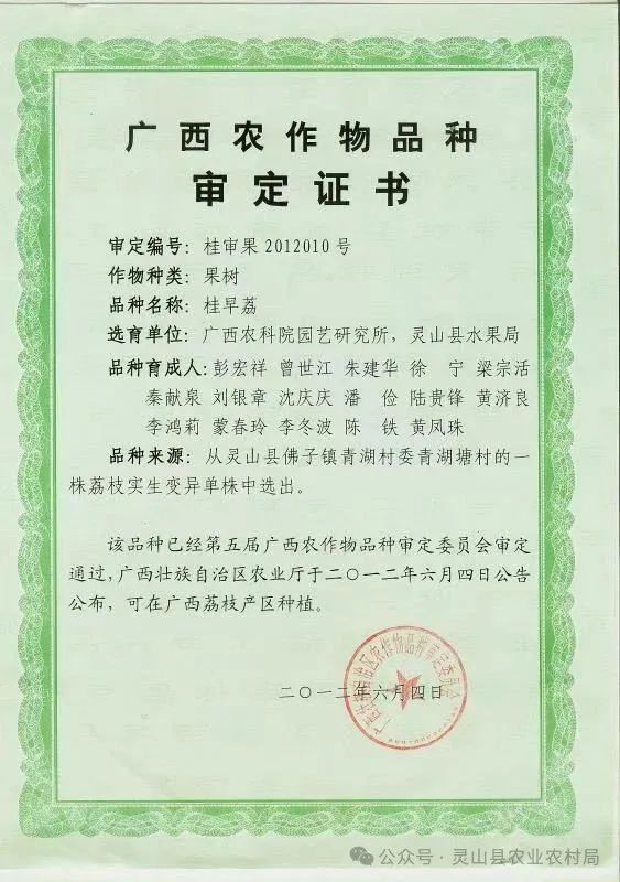 5月28日清晨,三海街道那车村的荔枝园已是一片繁忙。收购商劳日贵的货车旁,果农们刚摘下的“桂早荔”带着青翠枝叶,水灵鲜亮。“带枝的桂早荔5元都难收到,精品果更俏,10到12元一斤都有人抢!”劳日贵一边验货一边感叹,“‘桂早荔’这个品种,今年火得供不应求!”在灵山县瑞森果业的分拣车间,同样一派火热景象。负责人黄景雄穿梭在工人间指挥:“小点的果别装箱,客户复购率高,品控要严!”他告诉笔者,公司主推的“桂早荔”提前上市即成市场宠儿,原计划日发4000多单,如今受限于货源仅能完成2000单左右。“果子7、8成熟就被订光,59.9元4斤半的规格卖爆了,真是‘熟不过摘’!”市场热度直接传导至果园。果农邓其杰家5亩“桂花香”荔枝挂果喜人,预估亩产超4000斤。面对收购商开出的4.5元带枝收购价,他显得很淡定:“再等等,好果不怕价不来。”丰收的底气,源于品种的独特优势。网络主播到果园网络直播带货“桂早荔”荔枝。黄尚安摄“‘桂早荔’是从本地一株老荔枝树优选培育而成,经权威审定推广。”该品种育成人之一的潘俭介绍,其果肉清甜软滑、汁多不腻,带着独特桂花香气。作为5月中下旬即上市的“先锋兵”,它完美填补了荔枝市场空档期,尤其适合鲜食或制作饮品甜点,风味独树一帜。广西农作物品种审定证书“桂早荔”。灵山县农业农村局供图灵山作为广西最大、全国第二大荔枝种植县,全县荔枝总面积达42万余亩,预计今年总产量将突破19万吨。从三月红到桂味、糯米糍等40多个品种次第成熟,而“桂早荔”的抢眼表现,为灵山荔枝产业奏响了今夏甜蜜序曲。