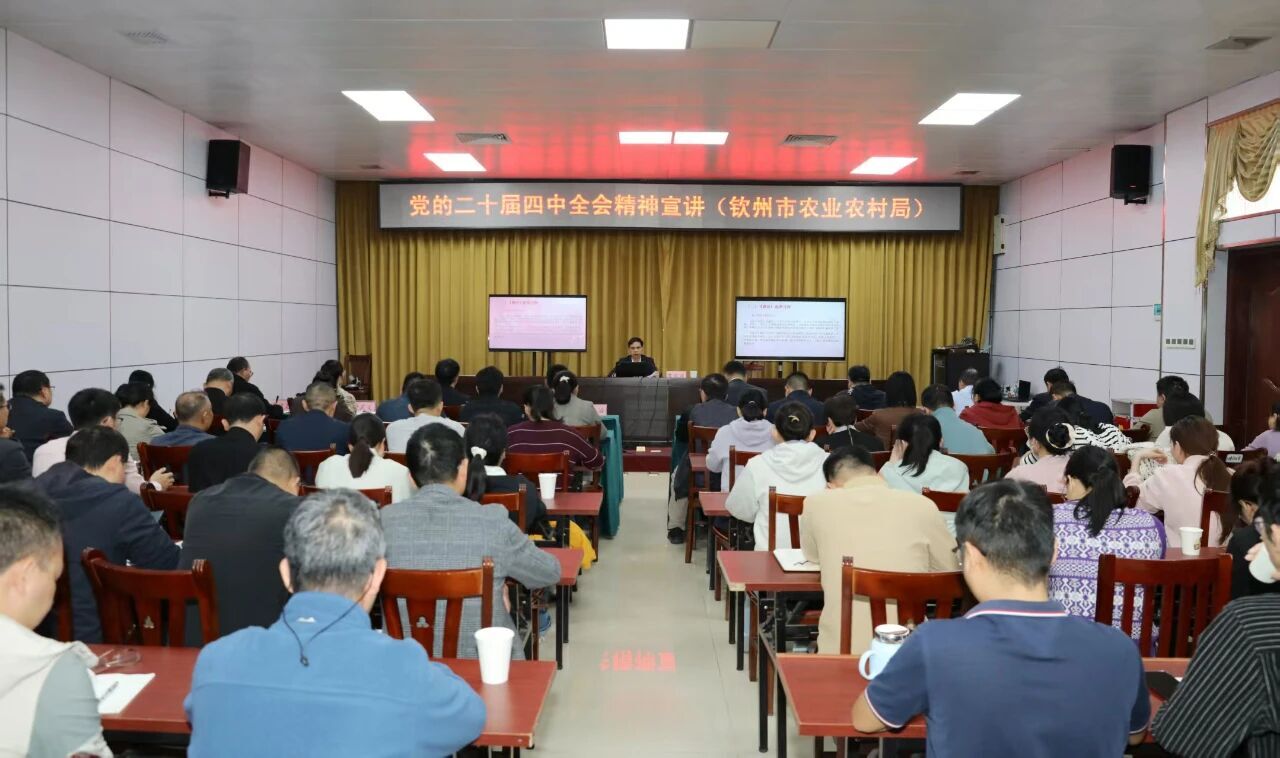 为深入学习贯彻党的二十届四中全会精神,12月19日下午,钦州市农业农村局举办学习贯彻党的二十届四中全会精神宣讲报告会,邀请市政协研究室主任苏宗海作专题报告。市农业农村局党组成员、副局长邱治主持会议,局处级领导、局机关科级以上干部、局属单位主要负责同志以及局年轻干部代表参加会议。