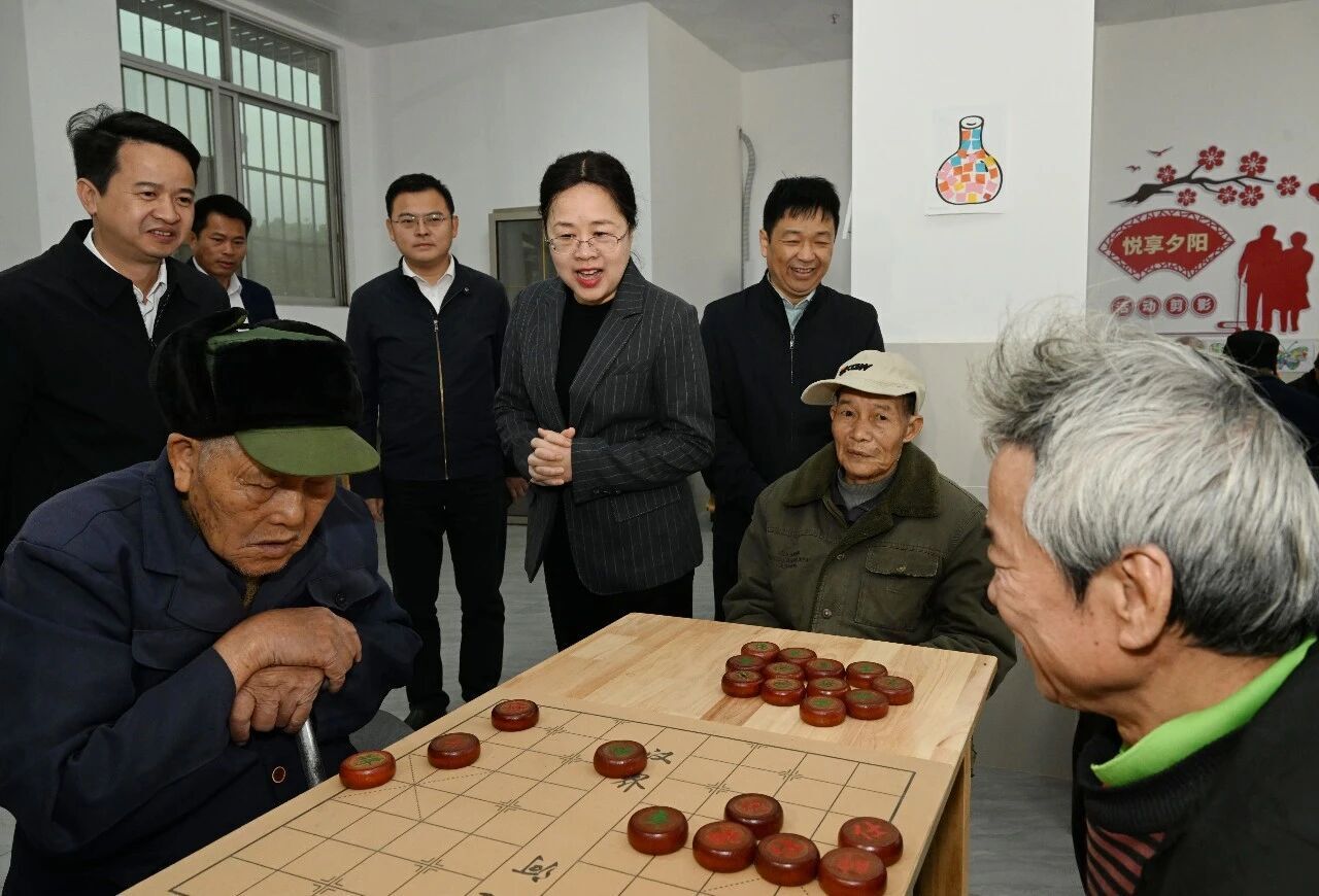 在灵山县旧州镇区域性养老服务中心和沙坪镇那琅村、石塘镇苏村村级养老服务站,钟畅姿察看中心、站点各功能室设施配置,与老人们亲切攀谈,祝他们新年快乐、身体健康,并详细了解乡镇区域养老服务中心和村级养老服务站建设运营管理有关情况。钟畅姿指出,积极应对人口老龄化,要精准聚焦居民群众养老需求,全面推广灵山县“村级养老服务站+养老协管员”农村养老经验,加强镇村养老服务设施建设,全市实现农村养老协管员全覆盖,为老年人提供老年助餐、文化娱乐、康复治疗、上门探访等多元服务,打通县、镇、村三级养老服务通道,推动专业照护资源下沉基层、进村入户;建立志愿者参与为老服务的长效机制,积极推动开展老年志愿服务,引导低龄健康老年人群体参与基层治理、乡村振兴、互助养老等活动,强化老有所为的制度保障,支持老年人社会参与。