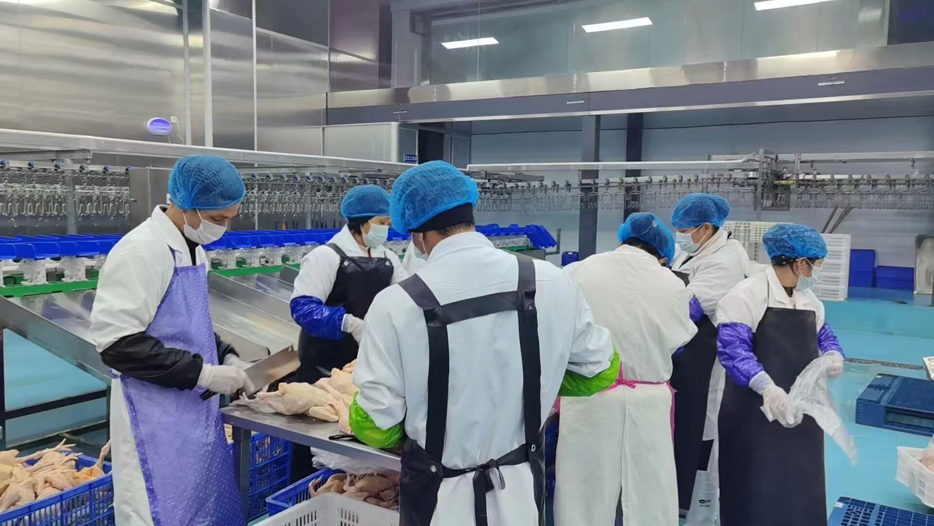 工人在那彭镇肉鸡大宗交易市场加工肉鸡。